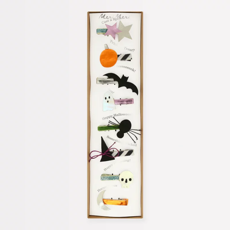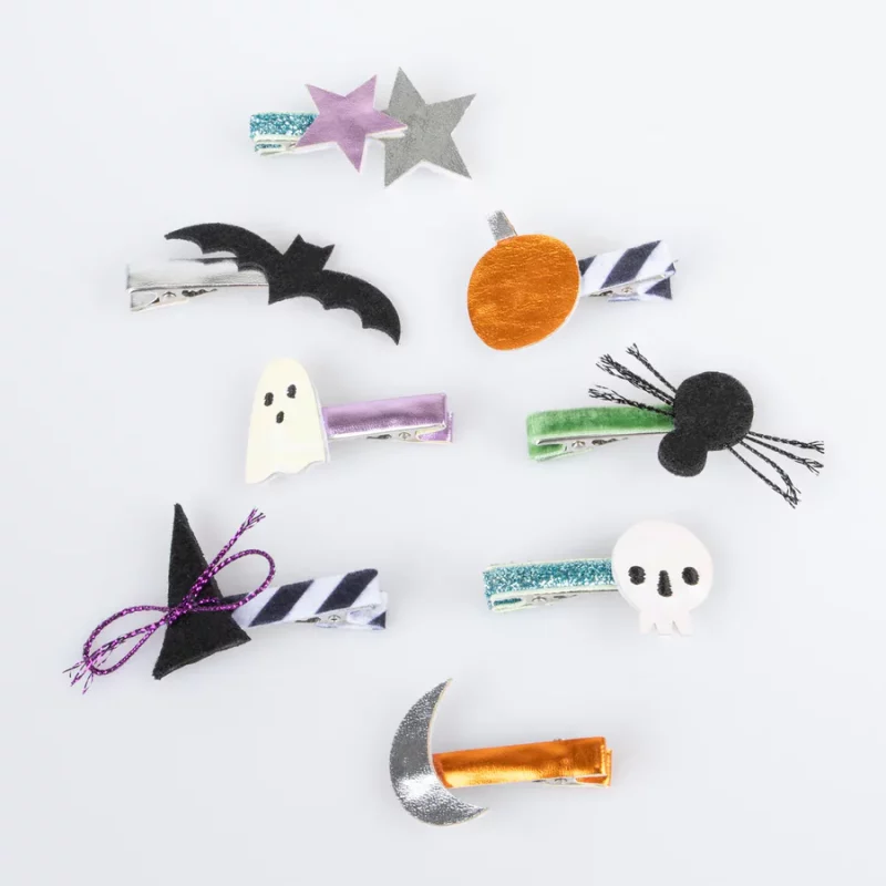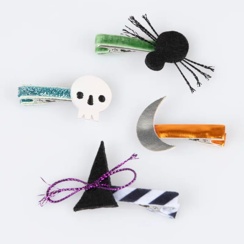 Añadir a la lista de DeseosConsigue un efecto espeluznante con nuestros fabulosos clips para el cabello, que presentan todos tus íconos favoritos de Halloween. Úsalos para complementar tu disfraz de Halloween o ponte varios para un look realmente espectacular. También son perfectos como regalos para bolsas de fiesta o detalles para los invitados.