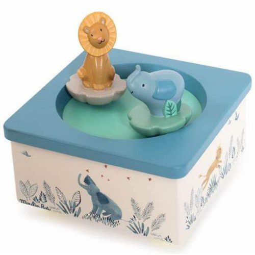38,90€La Caja de Música Baobab de Moulin Roty es una pieza adorable que combina diseño y funcionalidad, ideal para introducir a los niños en el mundo de la música y la fantasía. Al accionar su mecanismo, el león Paprika y el elefante Bergamote giran y bailan al ritmo de una…
