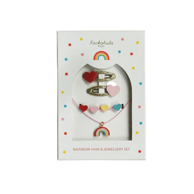 17,90€¡Esta caja de regalo de accesorios para el pelo y joyería vintage arcoíris es el regalo perfecto! El set incluye dos adorables clips de corazones envueltos con cinta dorada, un colorido collar con arcoíris y una pulsera de corazones multicolor. Cada set se presenta de forma preciosa en una caja…