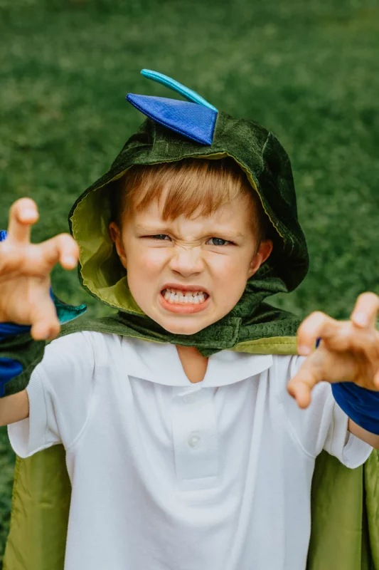 Añadir a la lista de DeseosEsta capa de dragón inspirará sin duda un montón de aventuras lanzando fuego. Confeccionada en velour texturizado con escamas y garras rellenas, es perfecta para el juego imaginativo.