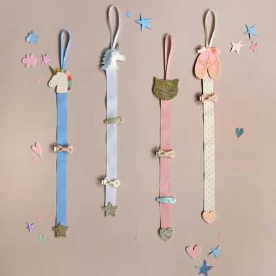 Añadir a la lista de DeseosMantén todas tus pinzas de pelo organizadas y siempre a mano con nuestro encantador colgador de unicornio. Diseñado con un lazo para colgar fácilmente en una puerta o en un gancho de pared, es la forma más práctica y bonita de guardar tus accesorios.