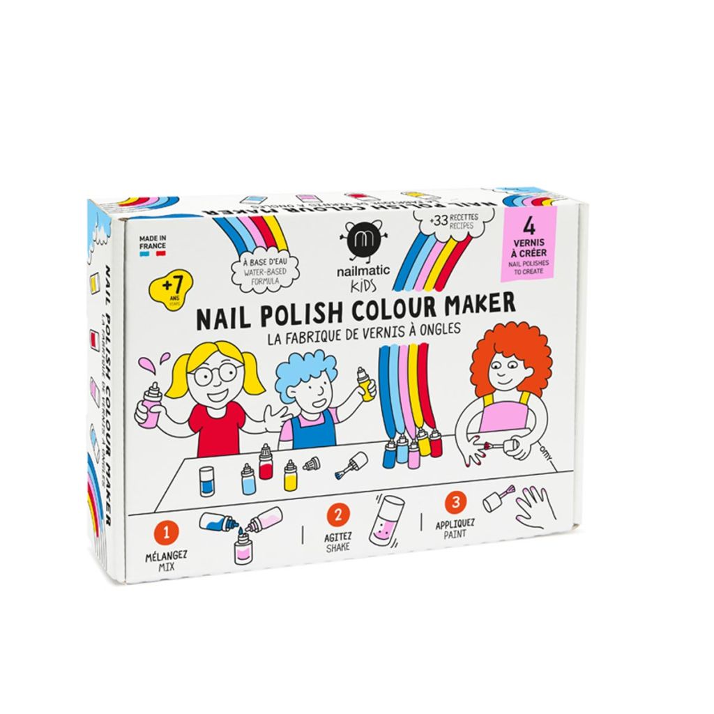 Nail Polish Colour Maker te permite crear esmaltes para niños en un abrir y cerrar de ojos. Es a base de agua, vegano, no testeado en animales y ¡súper divertido!