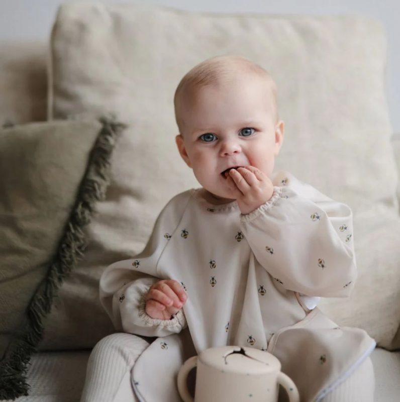 Con este práctico babero de material resistente al agua evitarás que se ensucie durante la comida: tiene un amplio bolsillo que recogerá fácilmente la comida y evitará que se ensucie el suelo o la ropa.