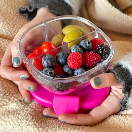 Añadir a la lista de DeseosEste bowl para Snacks a Prueba de Fugas Yumbox: ¡tu compañero ideal para picar mientras estás en movimiento! Diseño a prueba de fugas con 3 compartimentos sellados individualmente con una sola tapa que incluye una junta de silicona extraíble. Tiene porciones perfectas para snacks, con un total de 1,6 tazas, es el tamaño ideal para crear deliciosos boles de yogur con granola, verduras con hummus o snacks de galletas con queso. Es apto para congelador.