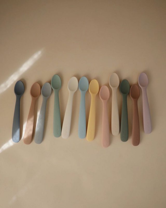 ¡Introduce a tu bebé en los alimentos sólidos con las cucharas de silicona de Mushie! Están hechas de material libre de químicos y la punta de silicona suave protege las encías sensibles del bebé y los dientes recién nacidos. Haga que la hora de la comida sea más divertida para el bebé con estas bonitas cucharas aptas en varios colores.