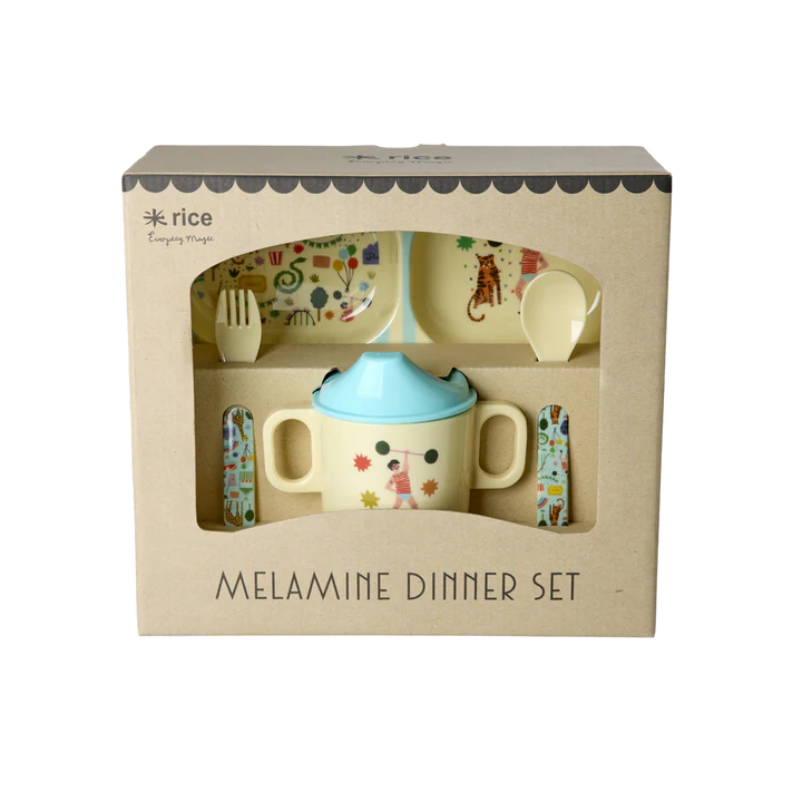Set de comida para bebé en caja de regalo. Fun fair Print