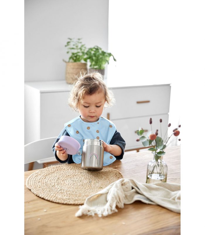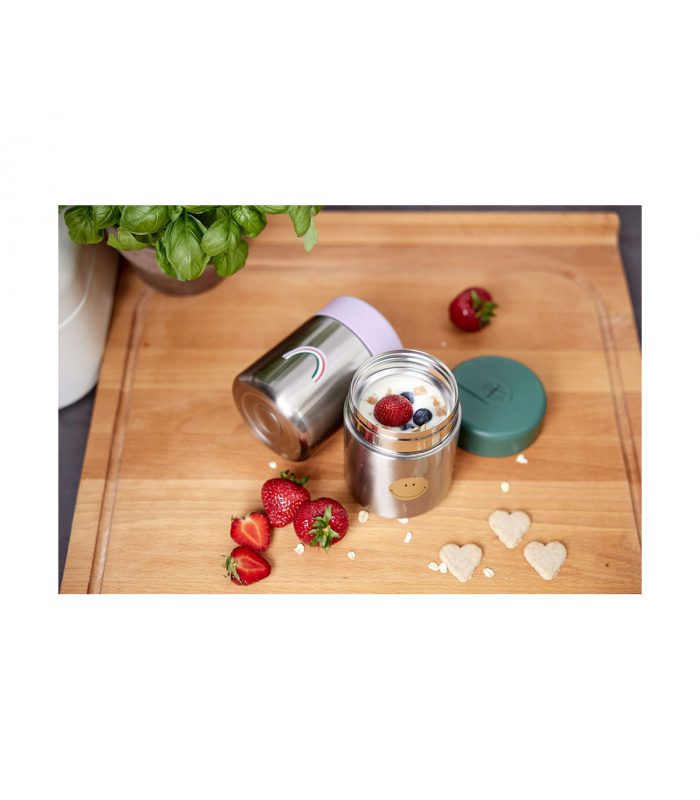 Este recipiente termo de doble pared, es perfecto para mantener la comida del bebé lista para comer cuando estás fuera de casa. Con una capacidad de 315 ml, este termo de acero inoxidable mantiene la comida caliente o fría y está hecho a prueba de fugas gracias al anillo de silicona extraíble integrado en la tapa. Libre de BPA, no es apto ni para el lavavajillas ni microondas.