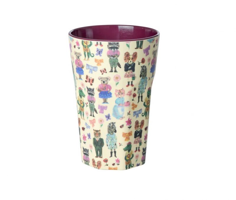 Añadir a la lista de DeseosNos enamoramos completamente de este estampado diseñado por Nathalie Lété… ¡koalas recogiendo flores, tigres con traje y cocodrilos jugando al tenis – todos impresos en un vaso alto de melamina – super adorable!