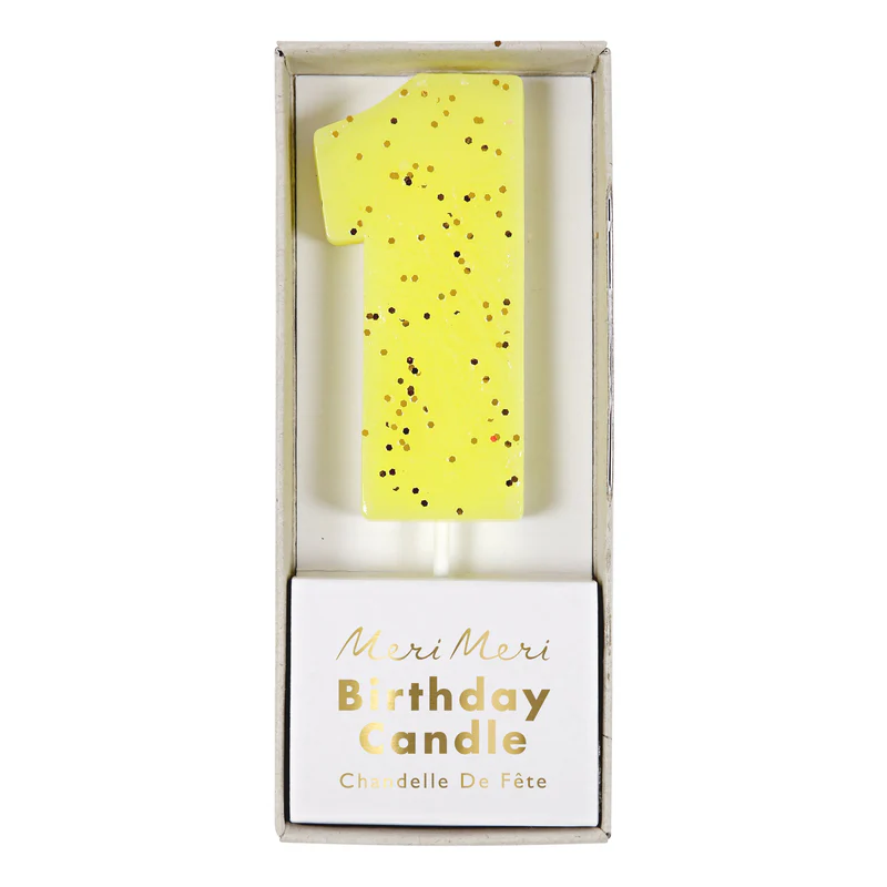 Añadir a la lista de DeseosVela amarilla con brillos dorados para personalizar tus fiestas con el día señalado a celebrar o con la edad de los que cumplen años.