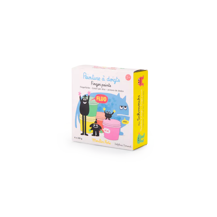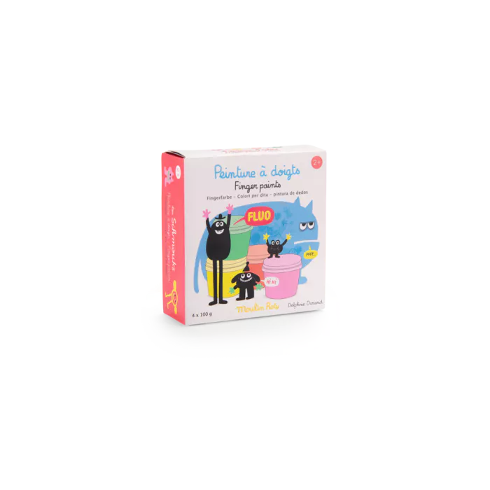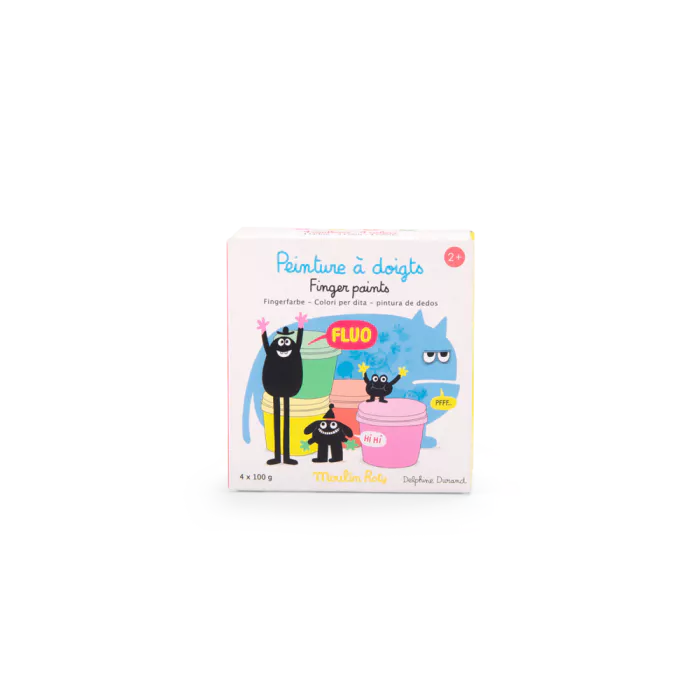 • Contenido: 4 botes de pintura de dedos fluorescente