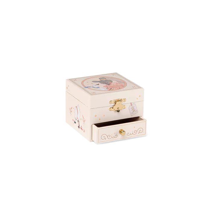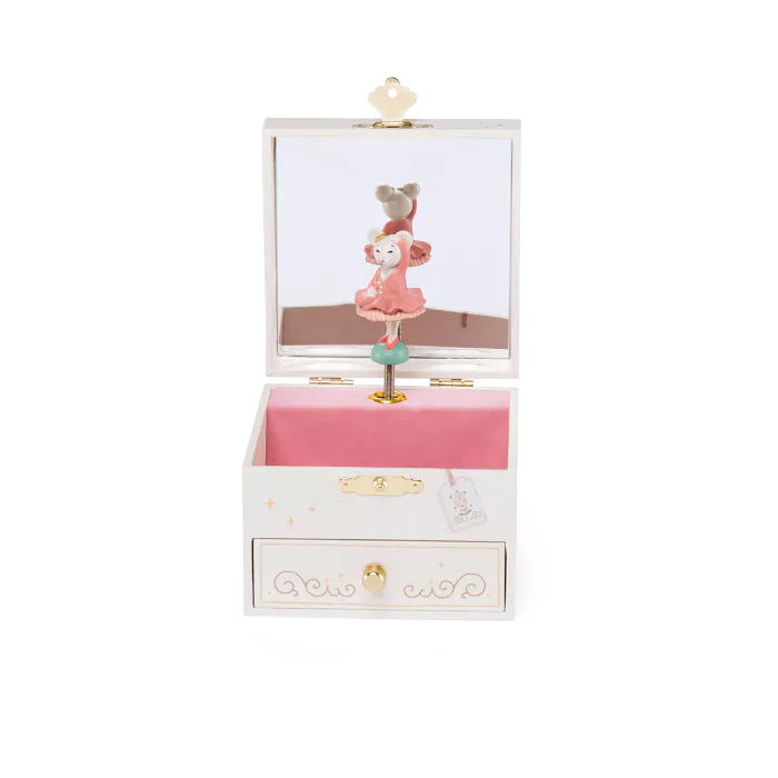 Añadir a la lista de DeseosCaja de música ilustrada con un pequeño cajón para guardar sus más valiosos secretos. Al abrirla, la adorable ratoncita bailarina gira al ritmo de una dulce melodía… ¡e incluso tiene un espejo para mirarse mientras suena la música!