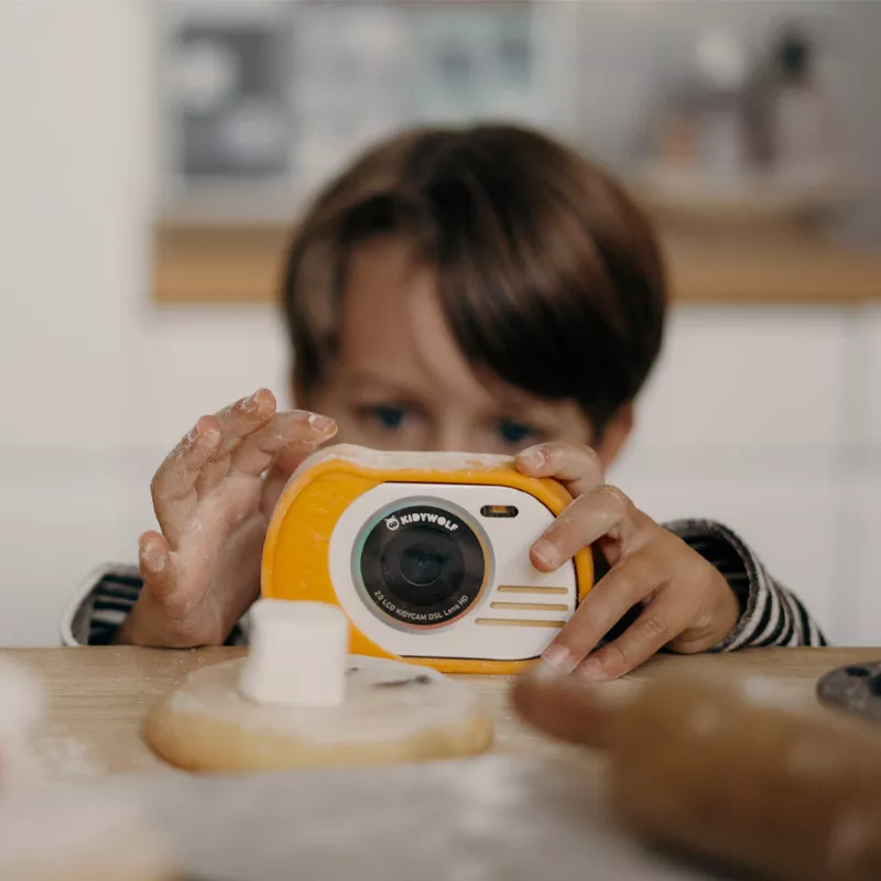 Resistente al agua y recargable: La cámara infantil Kidycam está diseñada para resistir las aventuras de tu hijo. Dispone de su propia batería recargable para largas horas de creación.