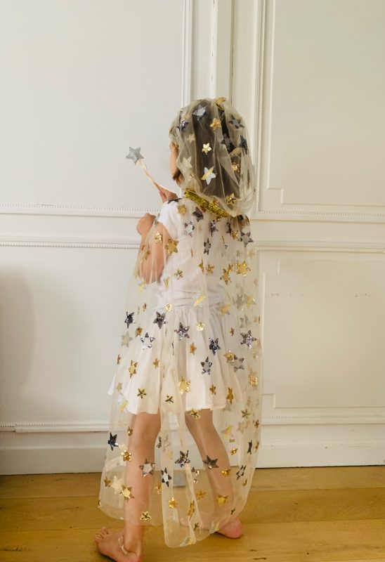 Añadir a la lista de DeseosCapa de tul bordada con hilo plateado y lentejuelas doradas y plateadas de la marca Ratatam.