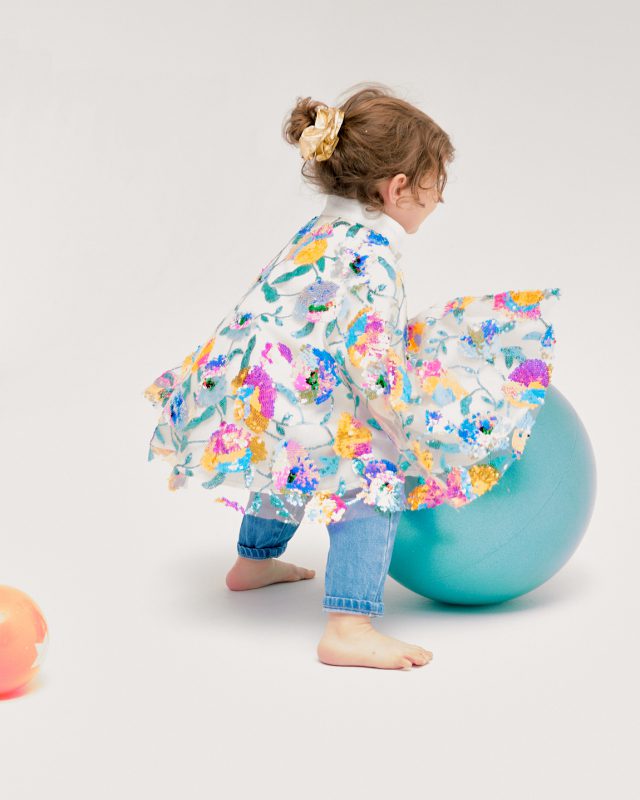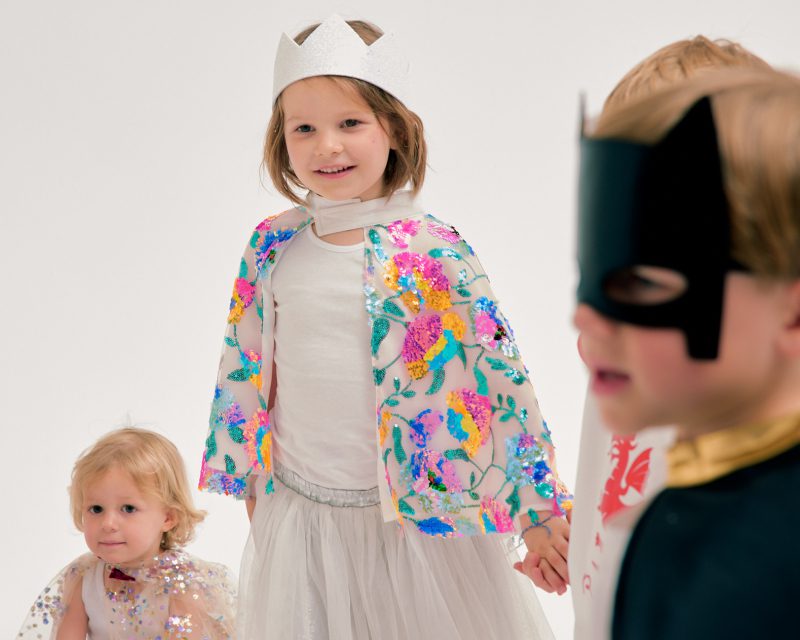 Capa bordada con lentejuelas multicolores y forrada con popelina de algodón de la marca Ratatam.