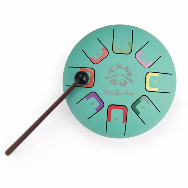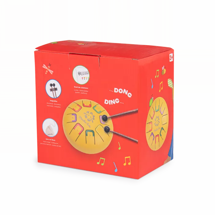 Este tambú es la forma perfecta de que los niños tengan su primera experiencia musical. Emite sonidos relajantes y melodiosos que desarrollan la sensibilidad auditiva y el sentido del ritmo. El juego incluye palillos, almohadillas para los dedos, un cuadernillo de notas y un práctico estuche. Ideal para niños de 3 a 11 años.