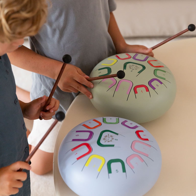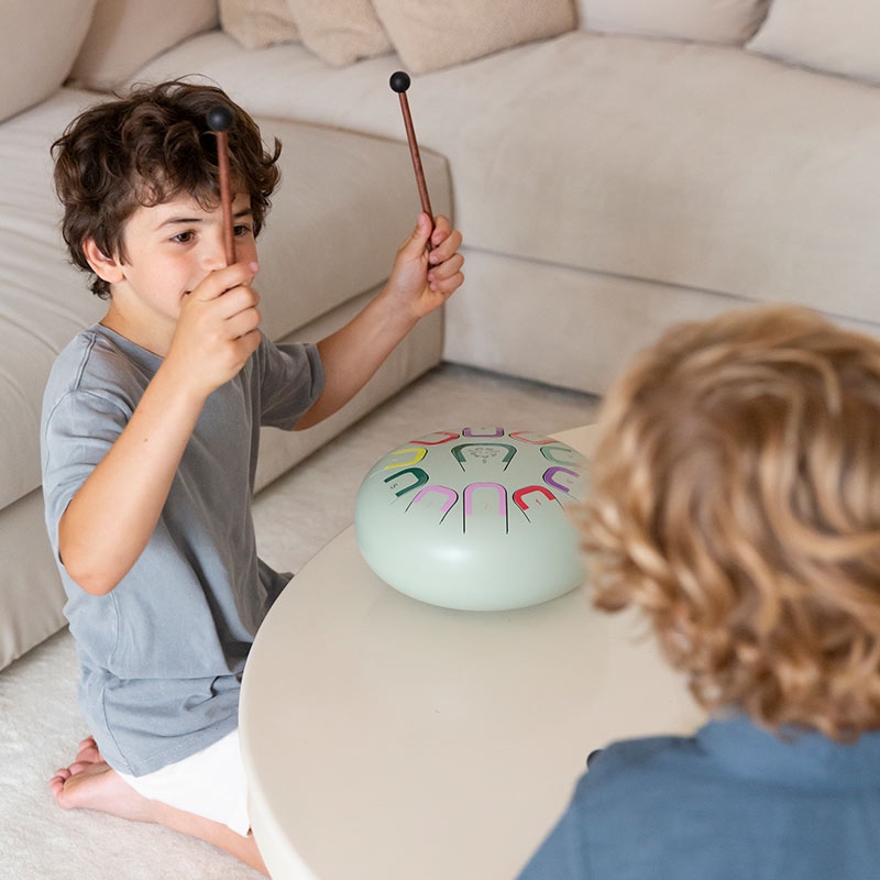 Tambú+ amplía el clásico Tambú con un diámetro de 25 cm, ofreciendo mayor resonancia y profundidad. Es ideal para explorar melodías más complejas y crear paisajes sonoros envolventes.