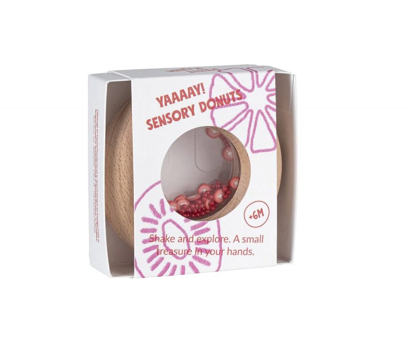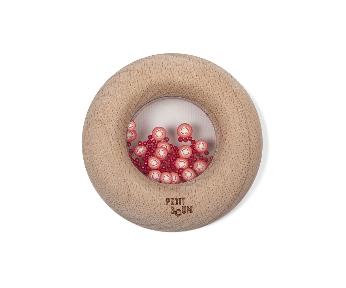 Añadir a la lista de DeseosNuestro nuevo juguete sensorial encantará a los pequeños más golosos. Es un sonajero de madera con forma de donut, ideal para que sus manos lo manipulen con comodidad y seguridad. En su interior, podréis identificar figuras de frutas o verduras, que al agitarse desatan el irresistible sonido marca de la casa. Aunque apetece comérselo, está hecho de madera de haya natural, libre de tóxicos y a prueba de mordiscos.