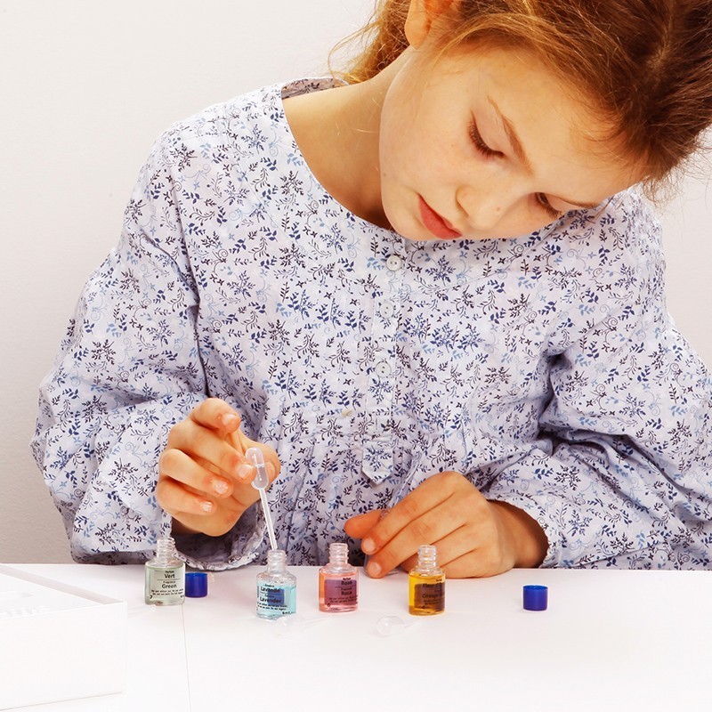 Las materias primas de este kit han sido seleccionadas por un perfumista, y las composiciones propuestas ayudarán a los niños a descubrir el arte de la perfumería como auténticos profesionales.