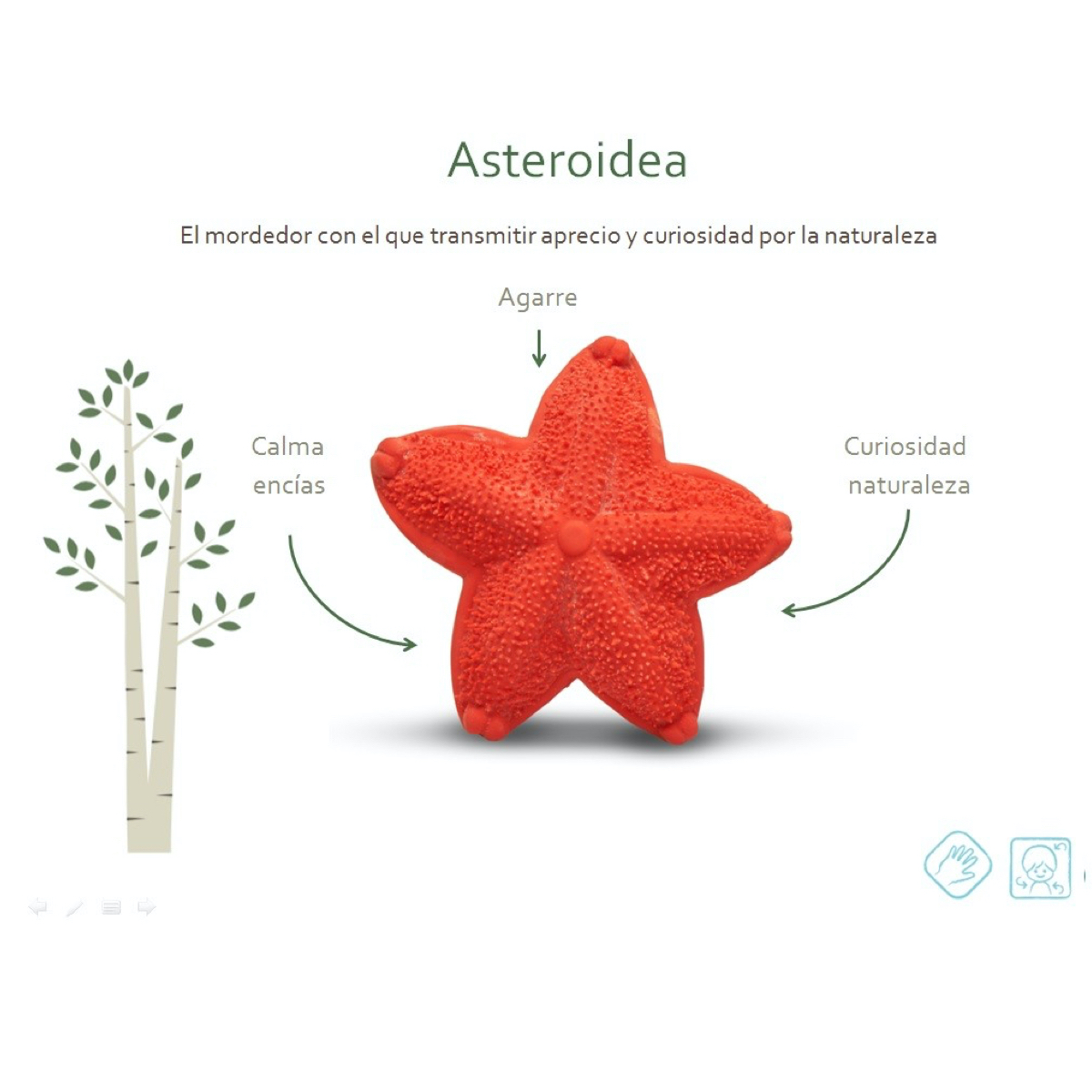 Añadir a la lista de DeseosAsteroidea es un mordedor inspirado en la naturaleza y el mar. Está fabricado a mano, en caucho natural totalmente biodegradable y sostenible y decorado con pigmentos de calidad alimentaria y hermético, totalmente seguro para el bebé. Un juguete que dará alivio al bebé en el momento de la dentición Este dulce mordedor permite desarrollar la motricidad fina del bebé gracias a su forma. Lo podemos incorporar en pequeñas secuencias de juego simbólico.
