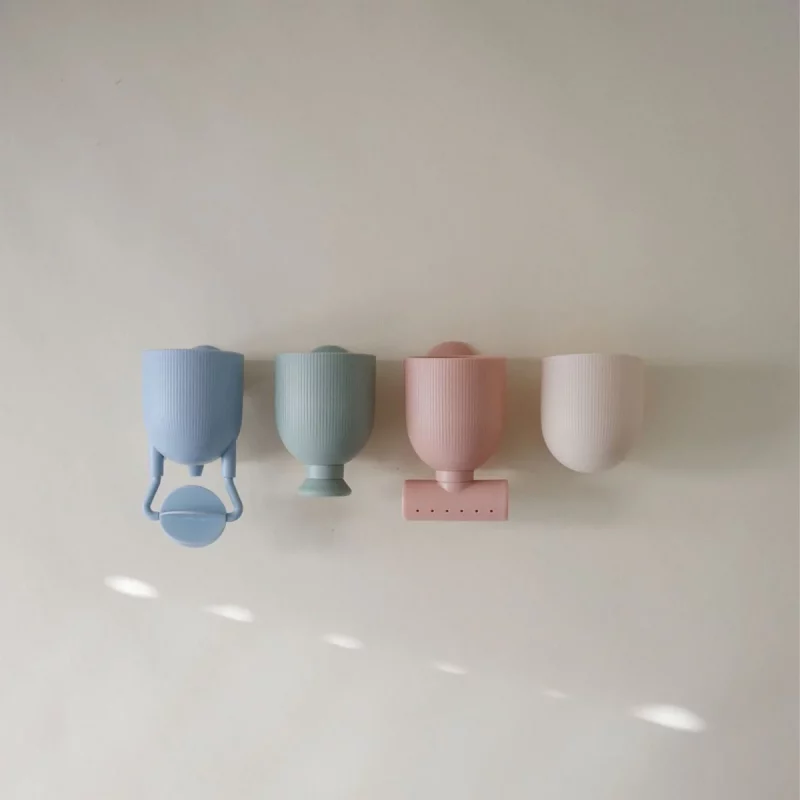 Cada vasito incluye una ventosa trasera para que los peques puedan colocarlos fácilmente en la pared o en el borde de la bañera y crear su propia cascada de agua mientras experimentan y se divierten.