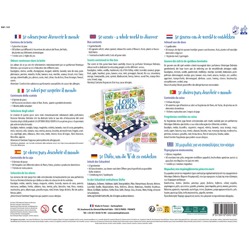El juego incluye 30 cápsulas con diferentes aromas, que convierten cada partida en una experiencia llena de descubrimientos. Ideal para compartir en familia, este juego estimula el desarrollo sensorial y el aprendizaje a cualquier edad.