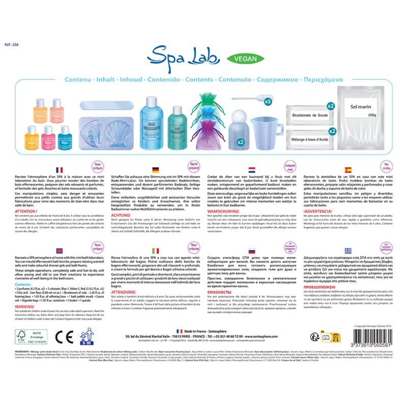 Este kit ha sido probado siguiendo las normas de juguetes y cosmética, bajo control dermatológico. Todos los ingredientes son no tóxicos y completamente seguros para la piel de los niños. Además, todas las actividades son fáciles y muy divertidas, ¡sin necesidad de calentar nada!