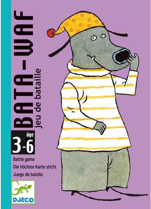 Añadir a la lista de Deseos-Un adorable juego de batalla para los más pequeños con divertidas ilustraciones de perros. 1, 2, 3: los jugadores dan la vuelta a la vez a la primera carta de su mano: el perro más grande gana la baza. Si hay varios perros del mismo tamaño, ¡hay «Bata-Waf»! Cuando un jugador ha ganado todas las cartas, gana la partida.