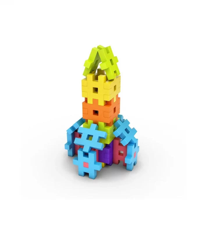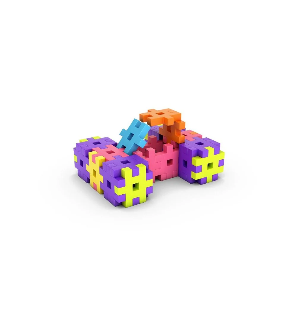 Los bloques son flexibles, agradables al tacto y seguros para los peques. Además, son planos y uniformes, en colores agradables y se pueden combinar fácilmente entre sí utilizando dientes especiales que le permiten construir formas planas (2D) y espaciales (3D).