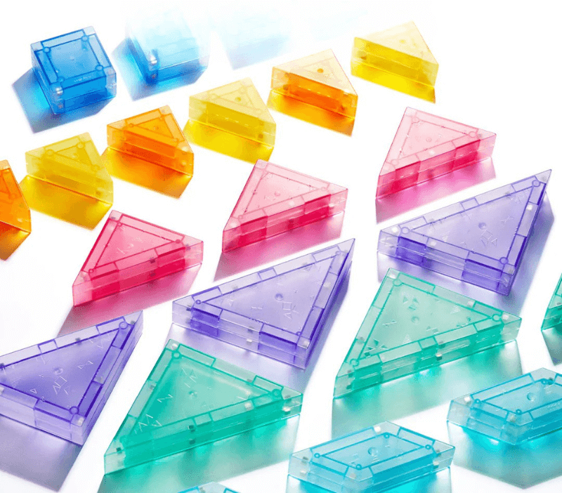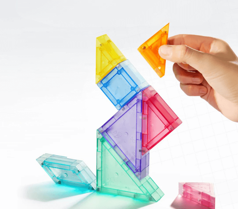 Un tangram magnético que invita a niñas y niños a explorar su creatividad y a desarrollar su capacidad de orientación espacial. Sus siete piezas translúcidas de plástico con imanes de neodimio, junto con un conjunto de 30 tarjetas de desafíos, permiten construir figuras tanto planas como tridimensionales.
