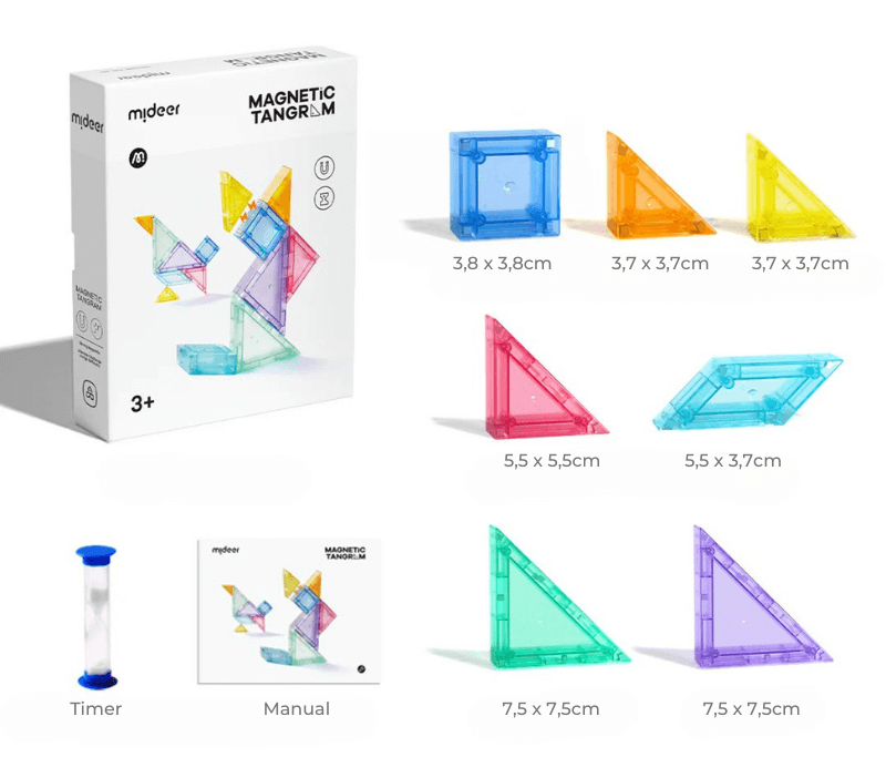 Tangram magnético 3D con reloj de arena mideer