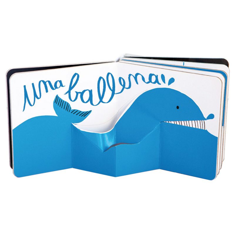 La Tierra, una ballena o unos vaqueros: abre el libro y descubre seis popups sobre el color azul. Animales, objetos o conceptos simples para presentar los colores a los más pequeños.