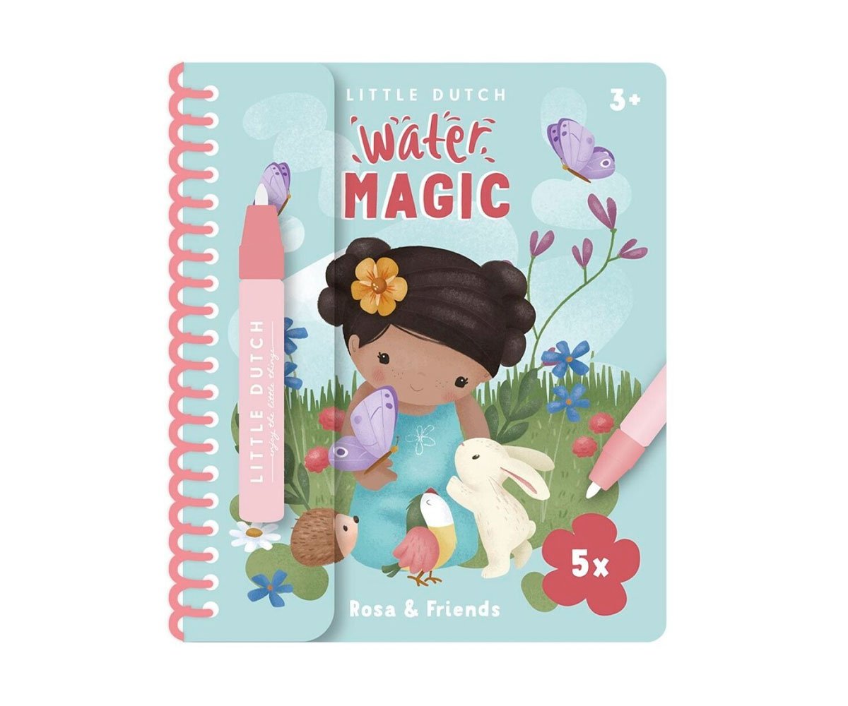 - Contenido: libro de anillas con 5 láminas y un rotulador de agua