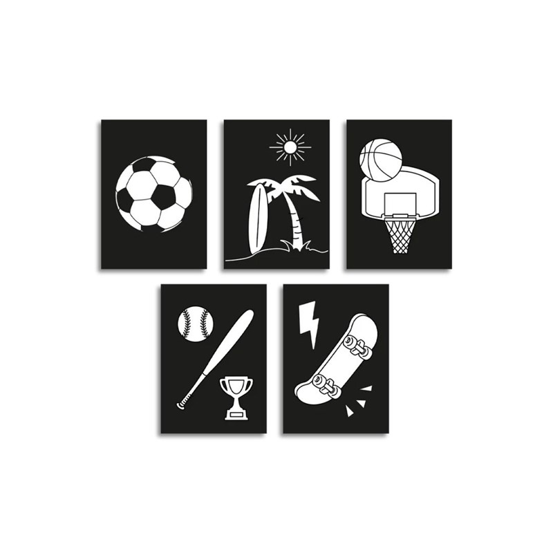 - 5 láminas preperforadas con temática deportiva