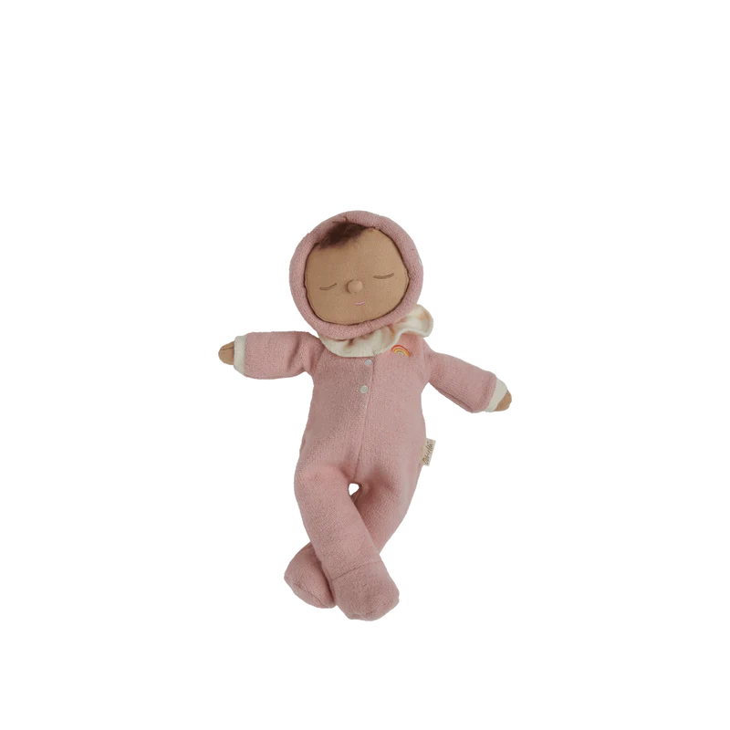 Todos los Dozy Dinkums son articulables, están hechos con el algodón más suave por fuera y son el primer juguete y recuerdo perfecto. Tienen el rostro más dulce bordado, un pequeño mechón de pelo y llevan un enterizo no removible con un arcoíris sobre el corazón.