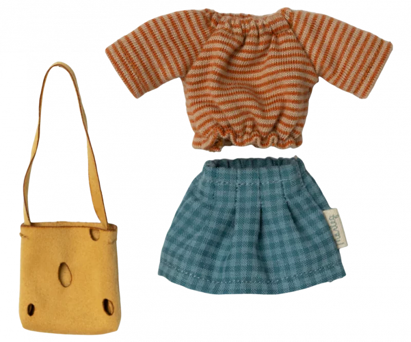 Añadir a la lista de DeseosJuego de ropa ideal en la talla de papá y mamá ratón. Incluye una blusa, una falda y un bolso.