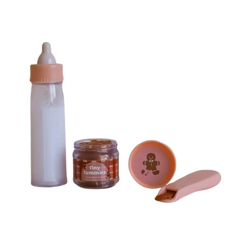 Tiny Harlow trae el pack de regalo perfecto para tus muñecos de estas fiestas navideñas. El set incluye un biberón mágico, un tarrito de gelatina con sabor a pastel de Navidad y una cuchara.