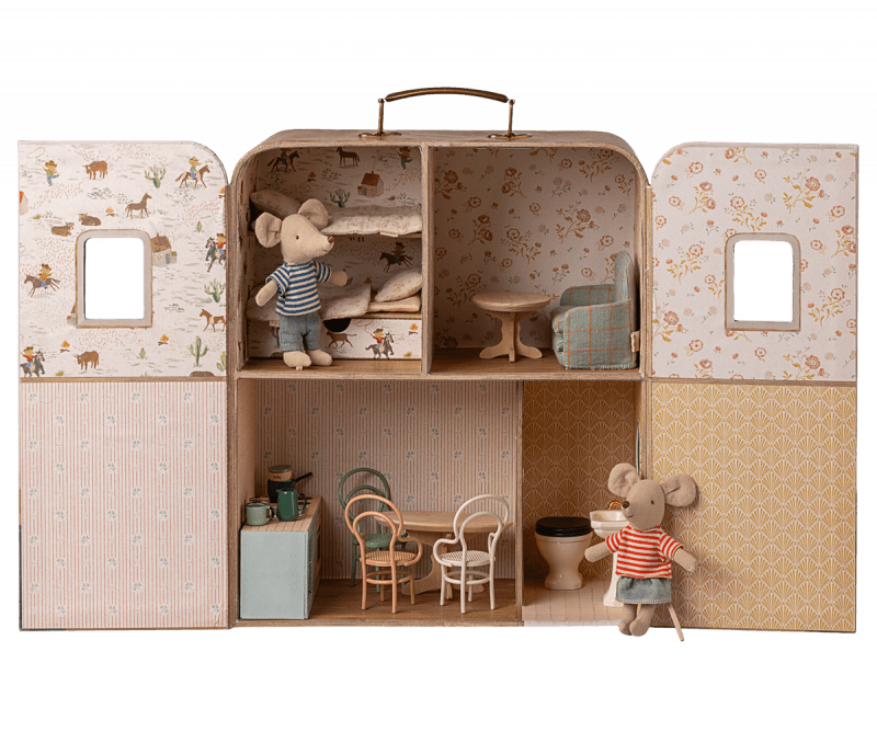 Añadir a la lista de DeseosBienvenidos a SuitCasa: una acogedora casita portátil. Su tamaño es perfecto para los hermanos ratón pequeños. Incluye dos juegos de ropa de cama suave para que tus pequeños amigos descansen, y puedes añadir otros muebles en miniatura para personalizar la decoración.