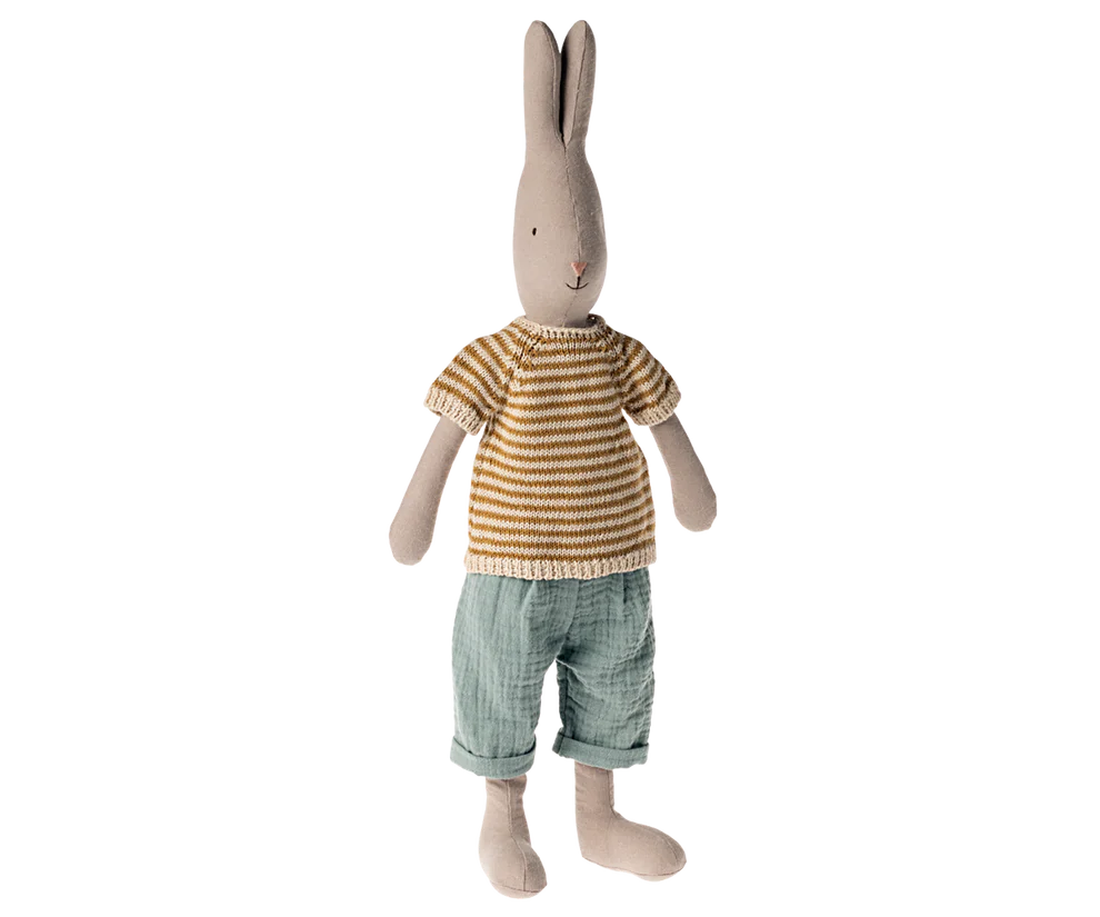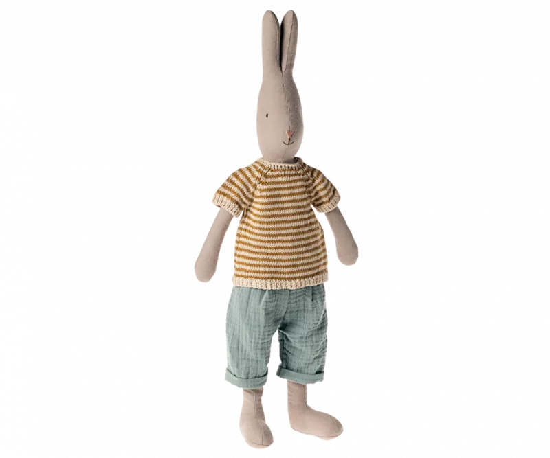 Añadir a la lista de DeseosUn conejo clásico hecho de suaves telas naturales que dan un tacto y aspecto encantadores. Está vestido con camisa y pantalones de puntos. Consulta la colección de ropa para ampliar el armario de los conejitos.