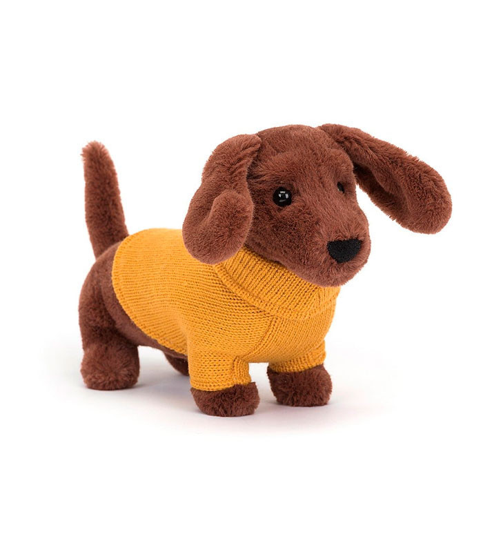 Peluche sweater perro salchicha amarillo