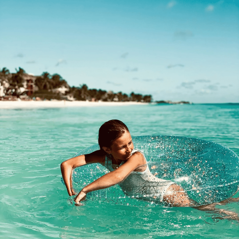 Ayuda a los más pequeños a ganar confianza en el agua y a entrar en la acción tú mismo, ¡la flotador purpurina garantiza la diversión del verano para toda la familia!
