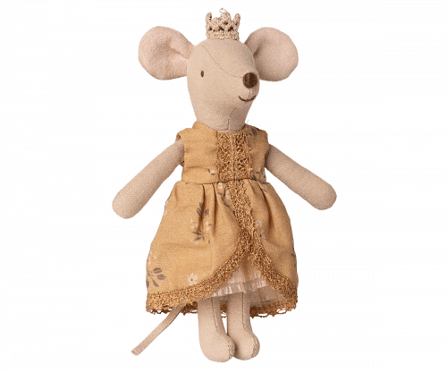 27,90€Una encantadora ratoncita princesa en formato de hermana mayor. Lleva un precioso vestido lleno de detalles y luce una elegante corona dorada. Es el complemento ideal para vivir aventuras en el castillo de Maileg. Características Dimensiones: 13 cm de alto. Materiales: algodón; relleno: poliéster reciclado y pellets. MAILEG