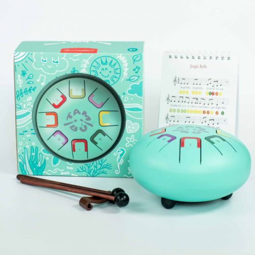 41,90€Baby tambor Tambú de color verde azulado con 8 lengüetas metálicas que puede tocarse con baquetas o las manos. Este llamativo instrumento musical de percusión cuenta con 8 lengüetas metálicas que emiten distintas notas musicales. Produce un sonido armónico, aterciopelado y de larga duración, que crea una atmósfera envolvente y…